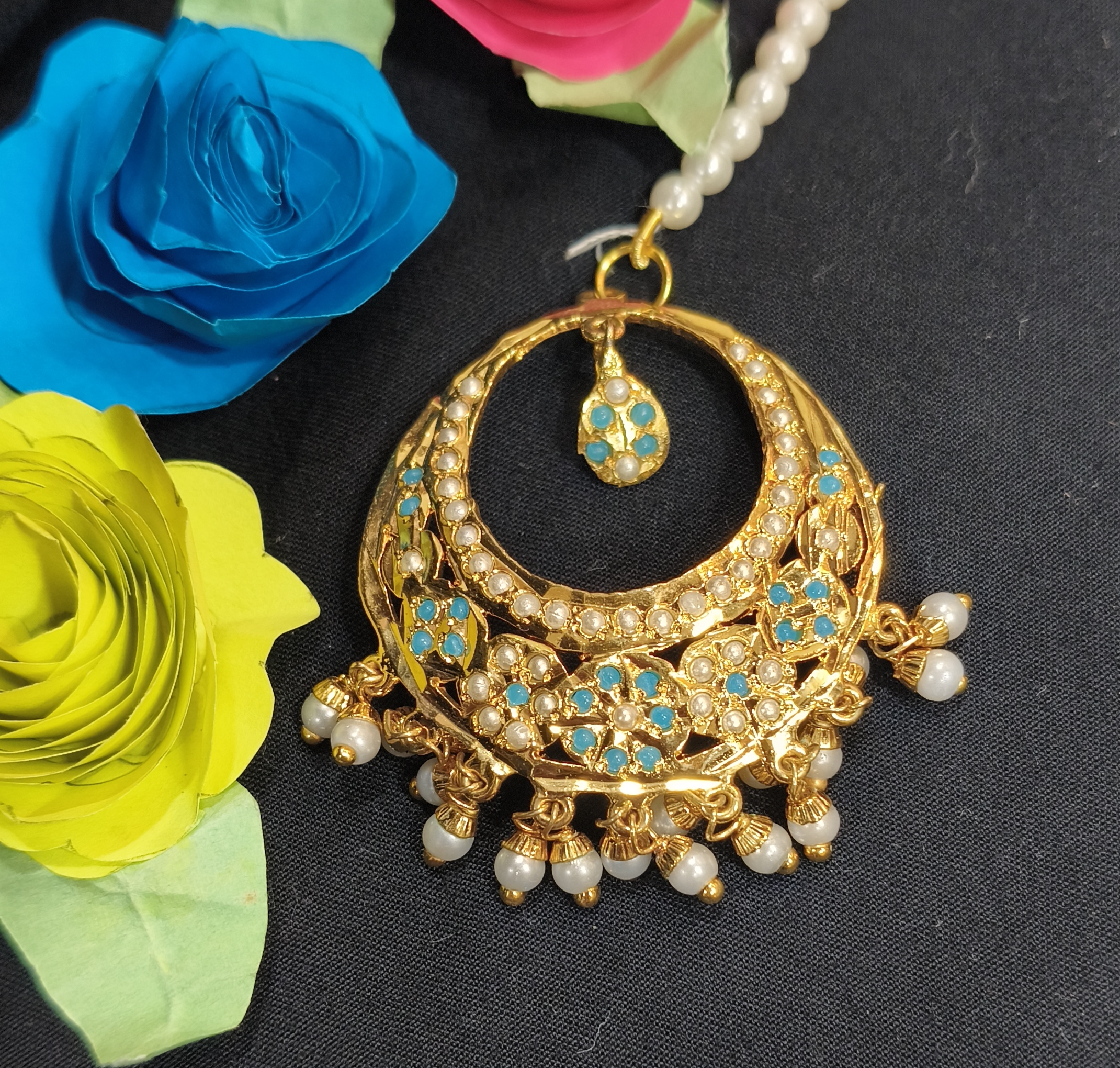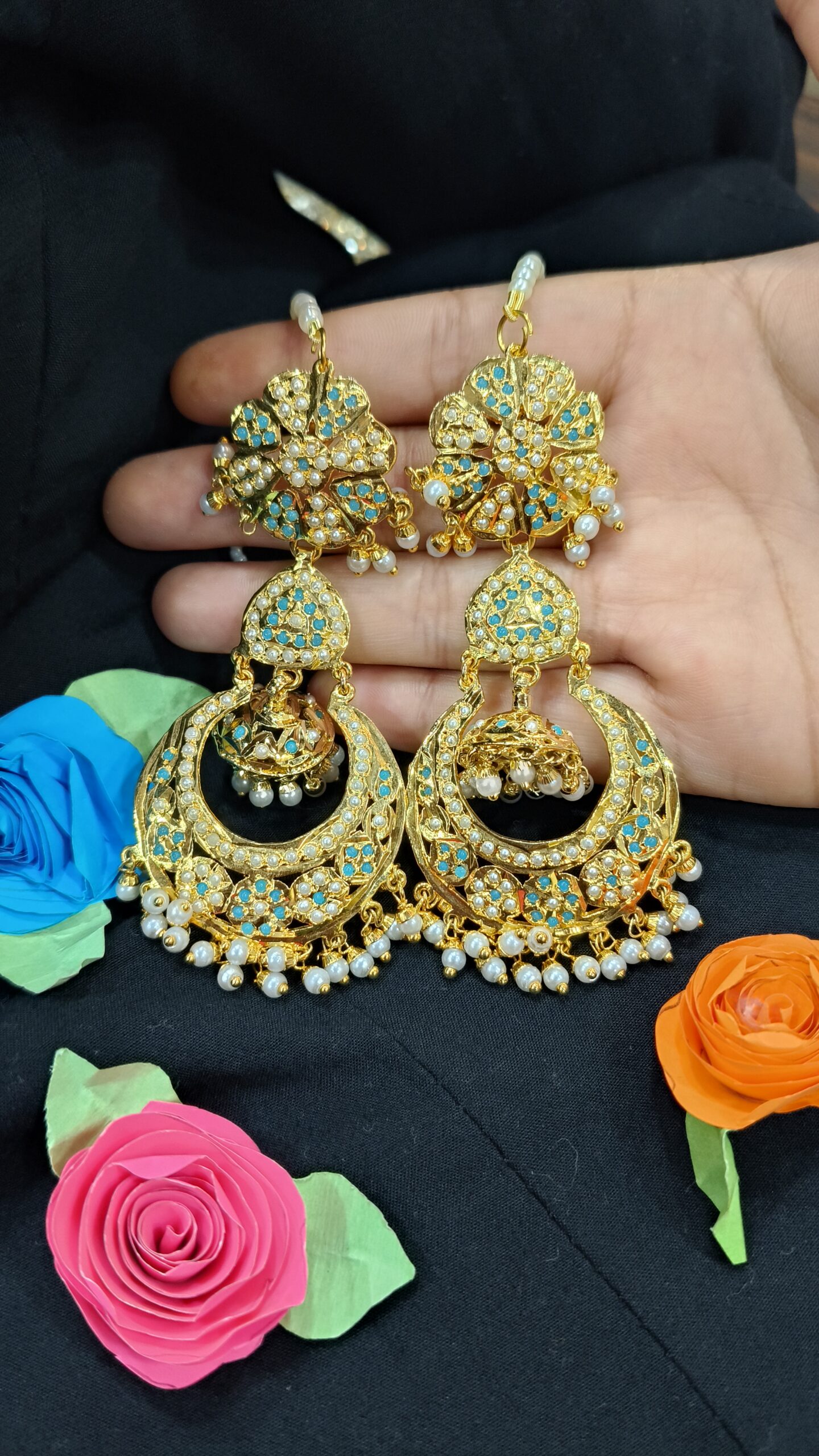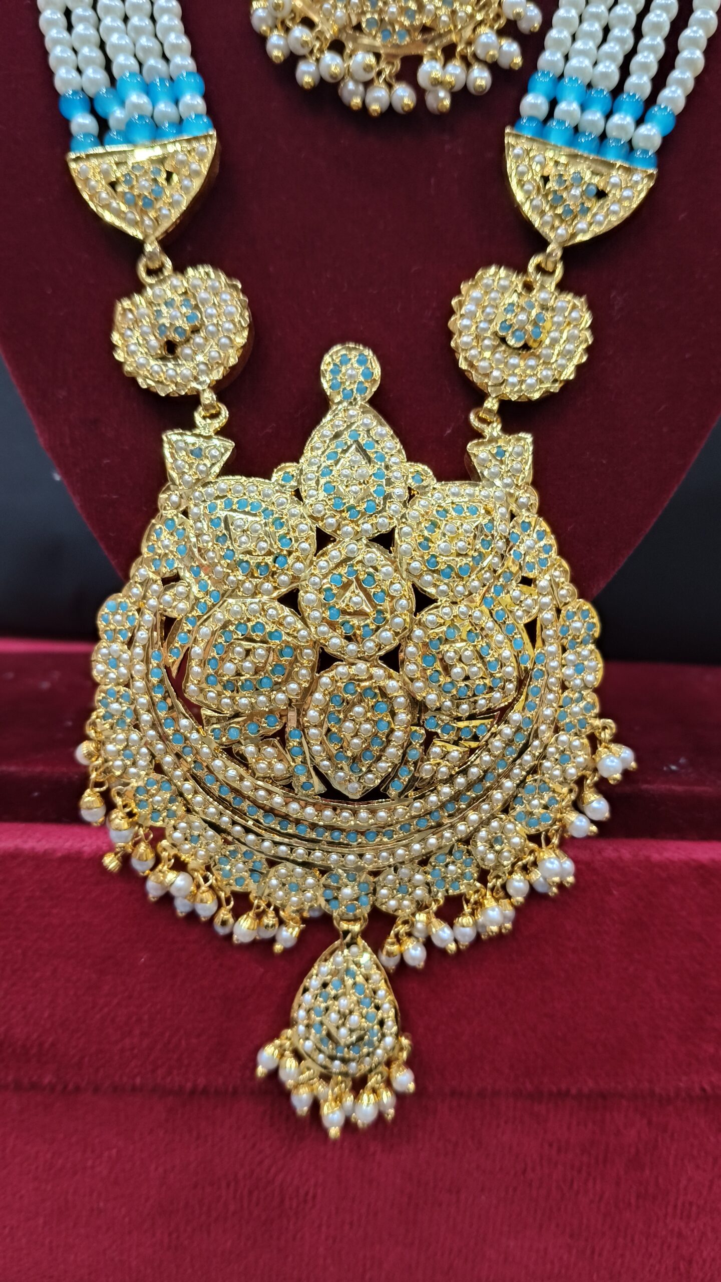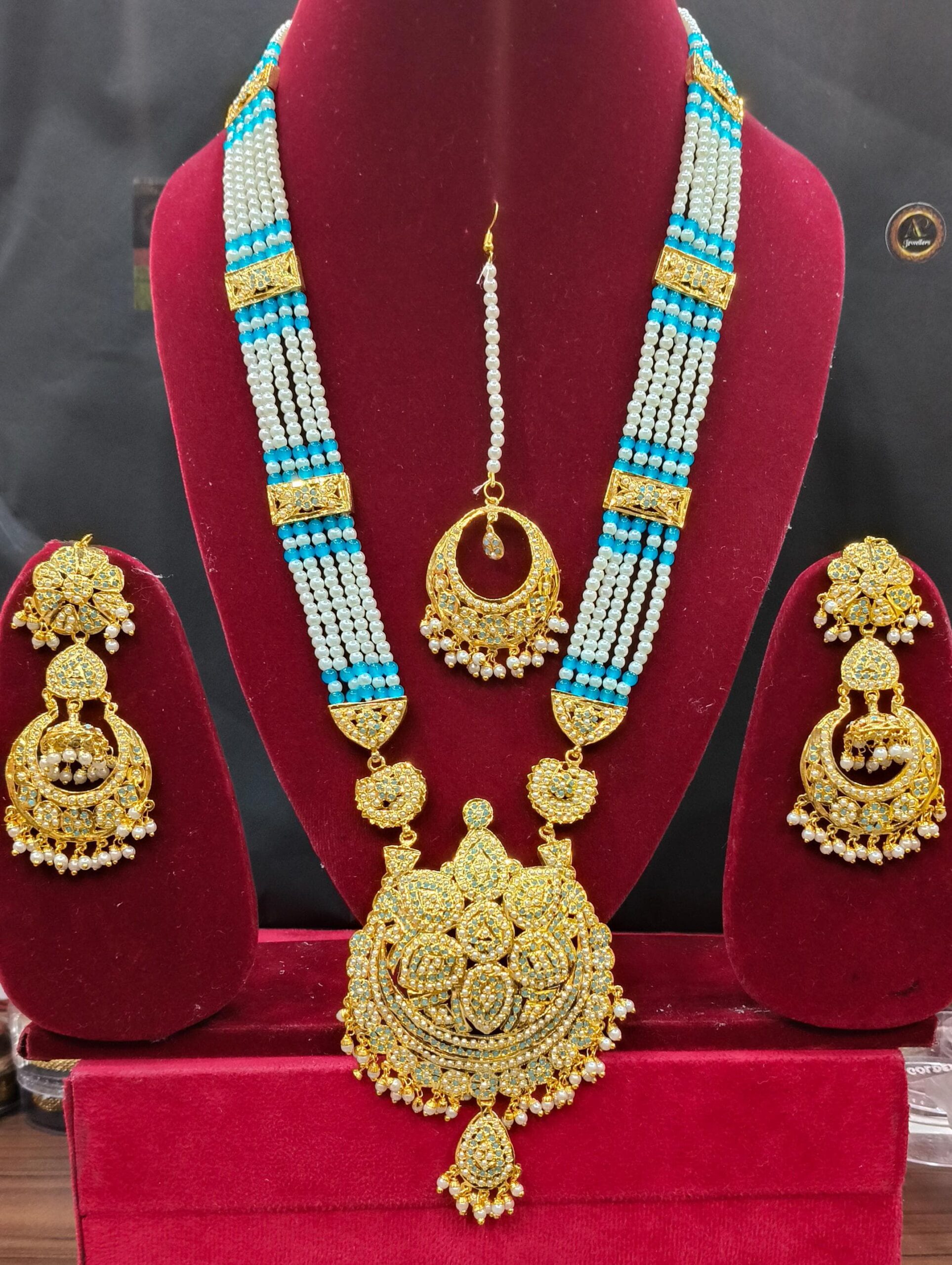 Design: Traditional Jadau motifs with gemstone and pearl accents