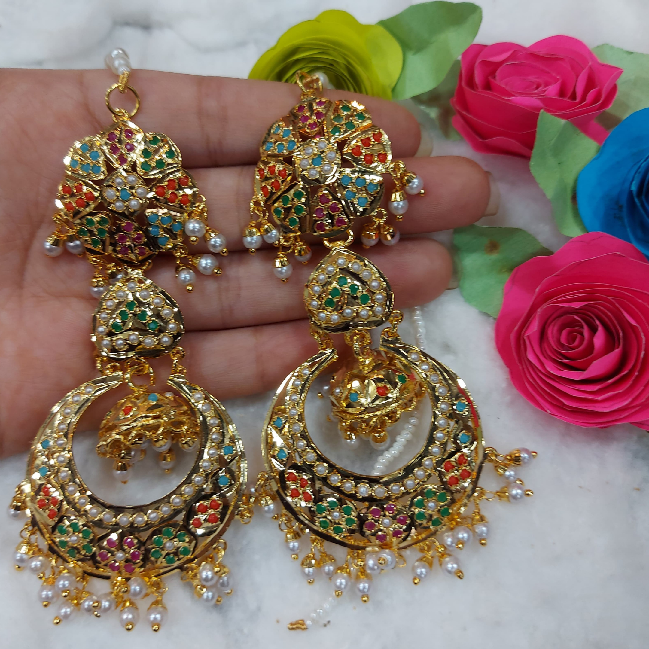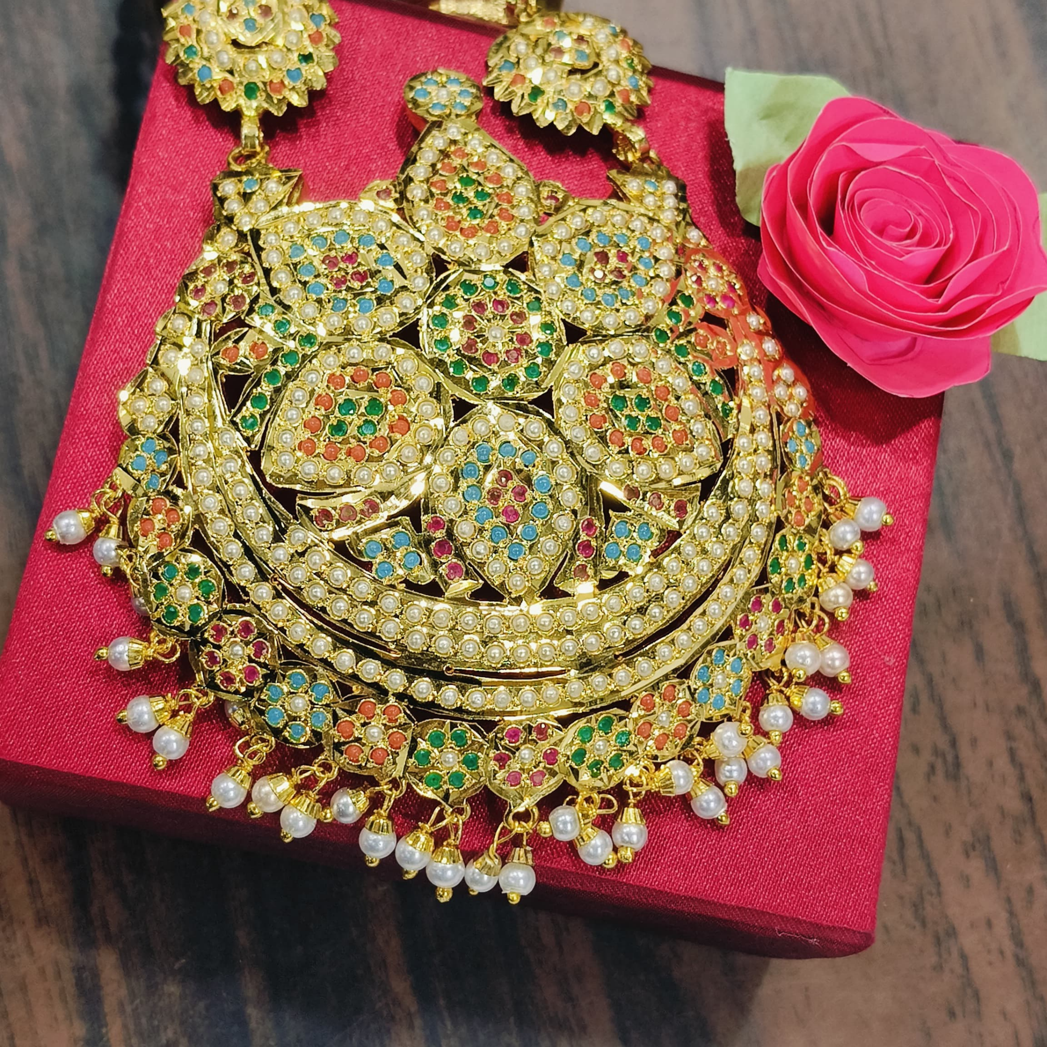 Design: Traditional Jadau motifs with vibrant embellishments